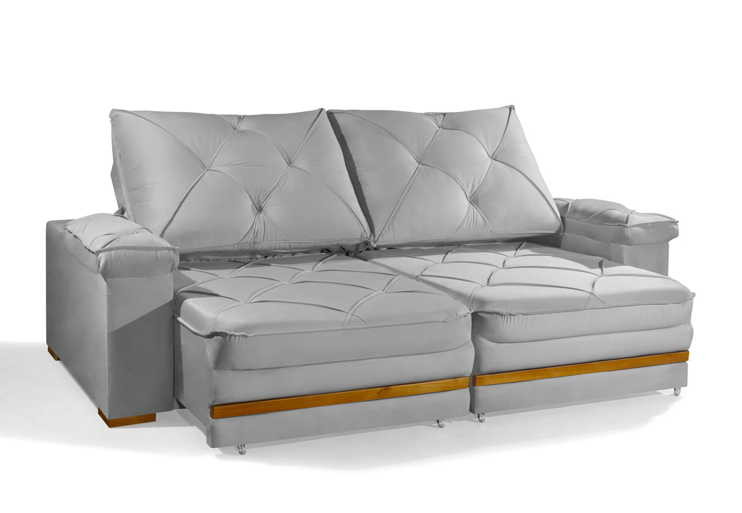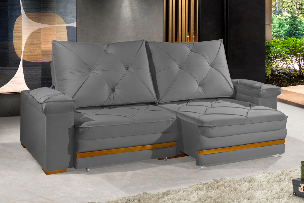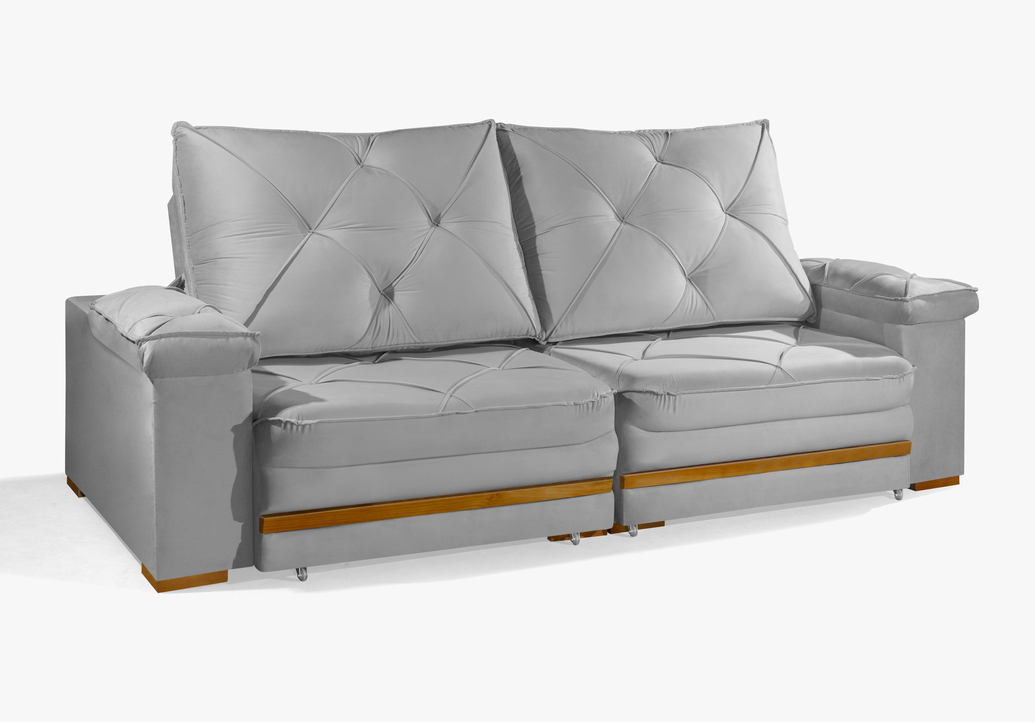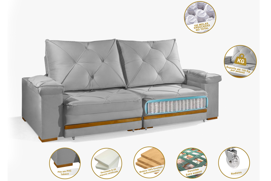 - Encosto reclinável com catraca de 4 posições, enchimento em fibra siliconada.