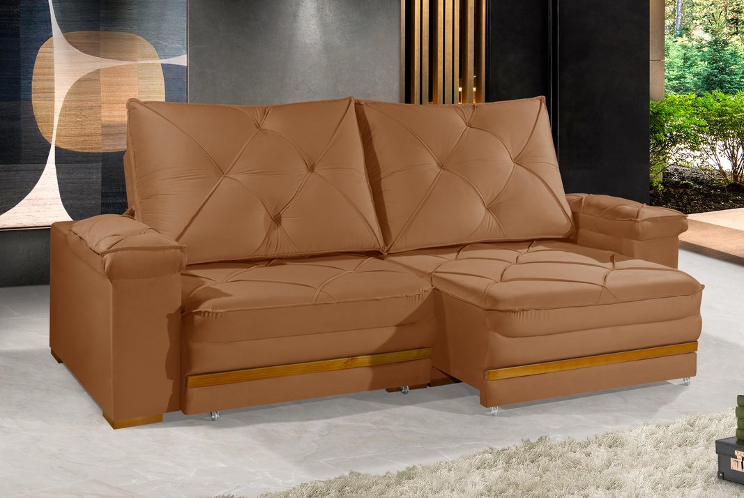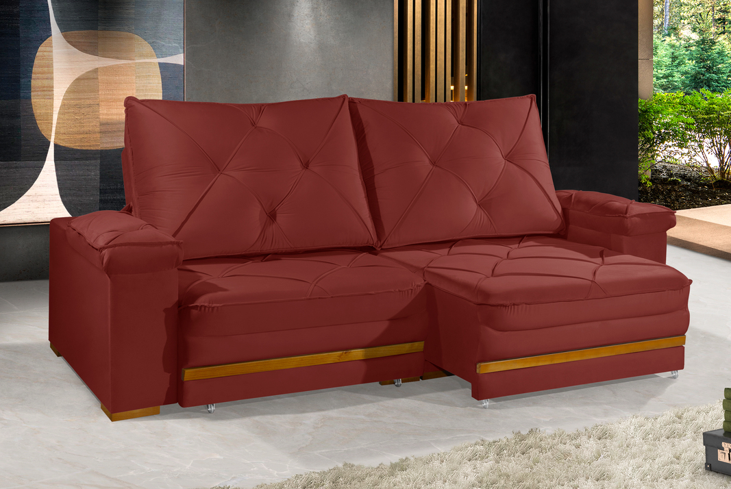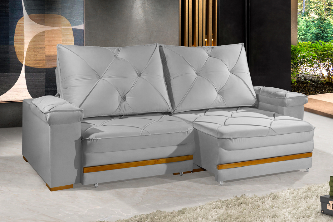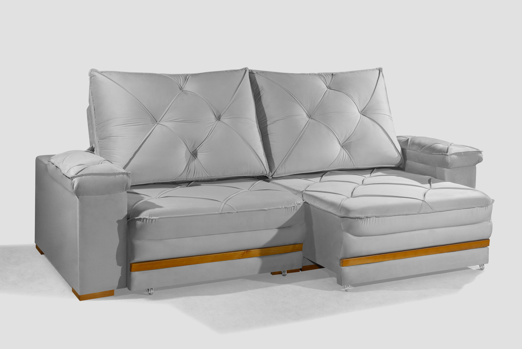 - Pés em madeira/rodízios.