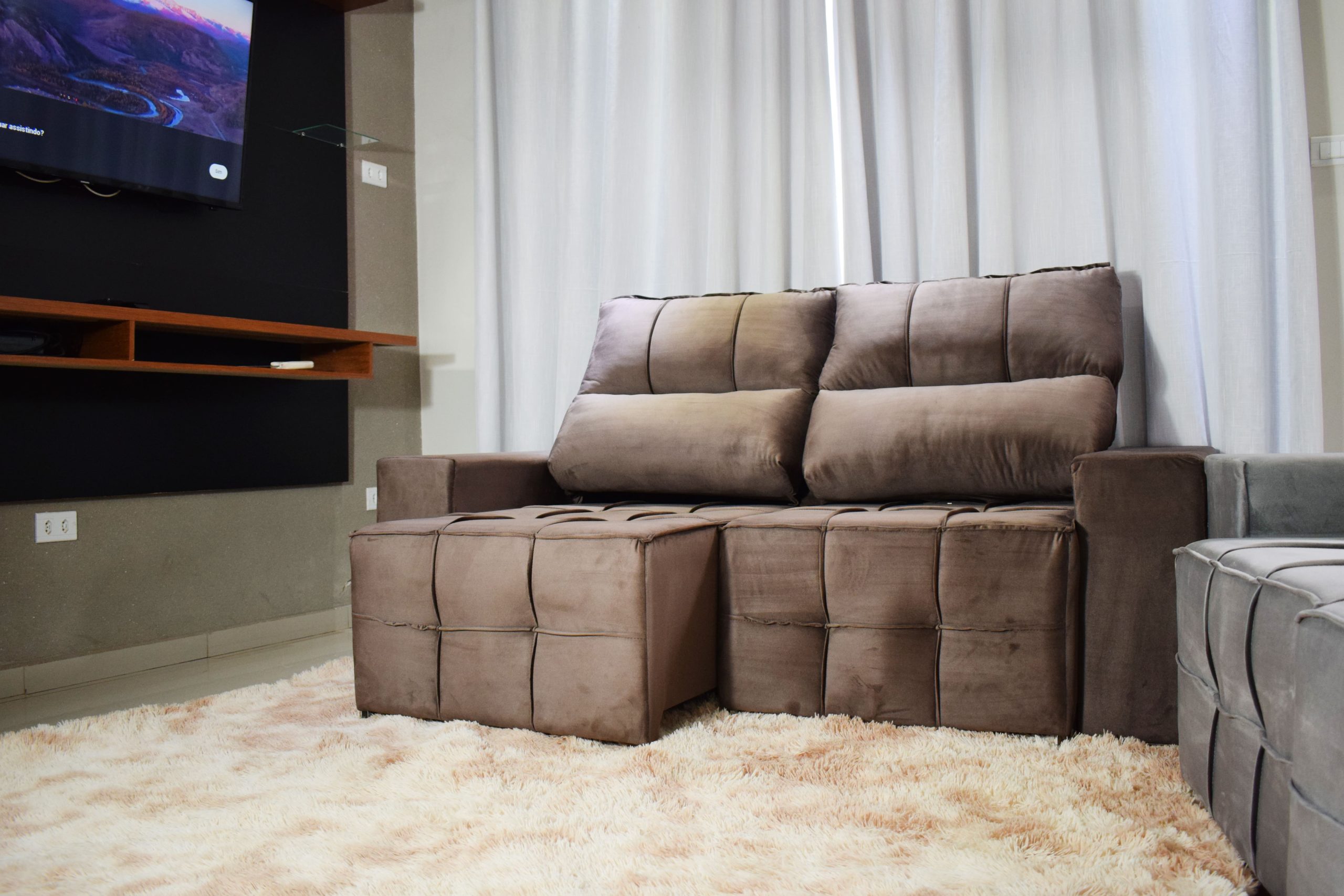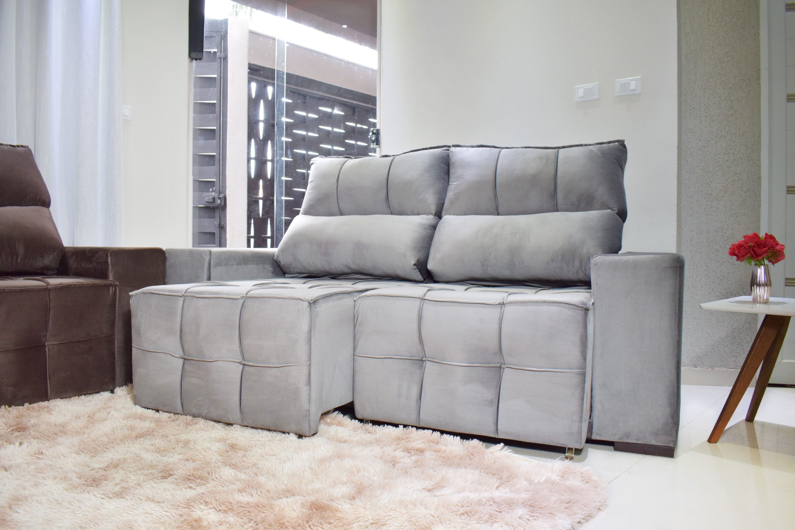 • Encosto reclinável com catraca, enchimento em fibra siliconada.