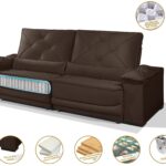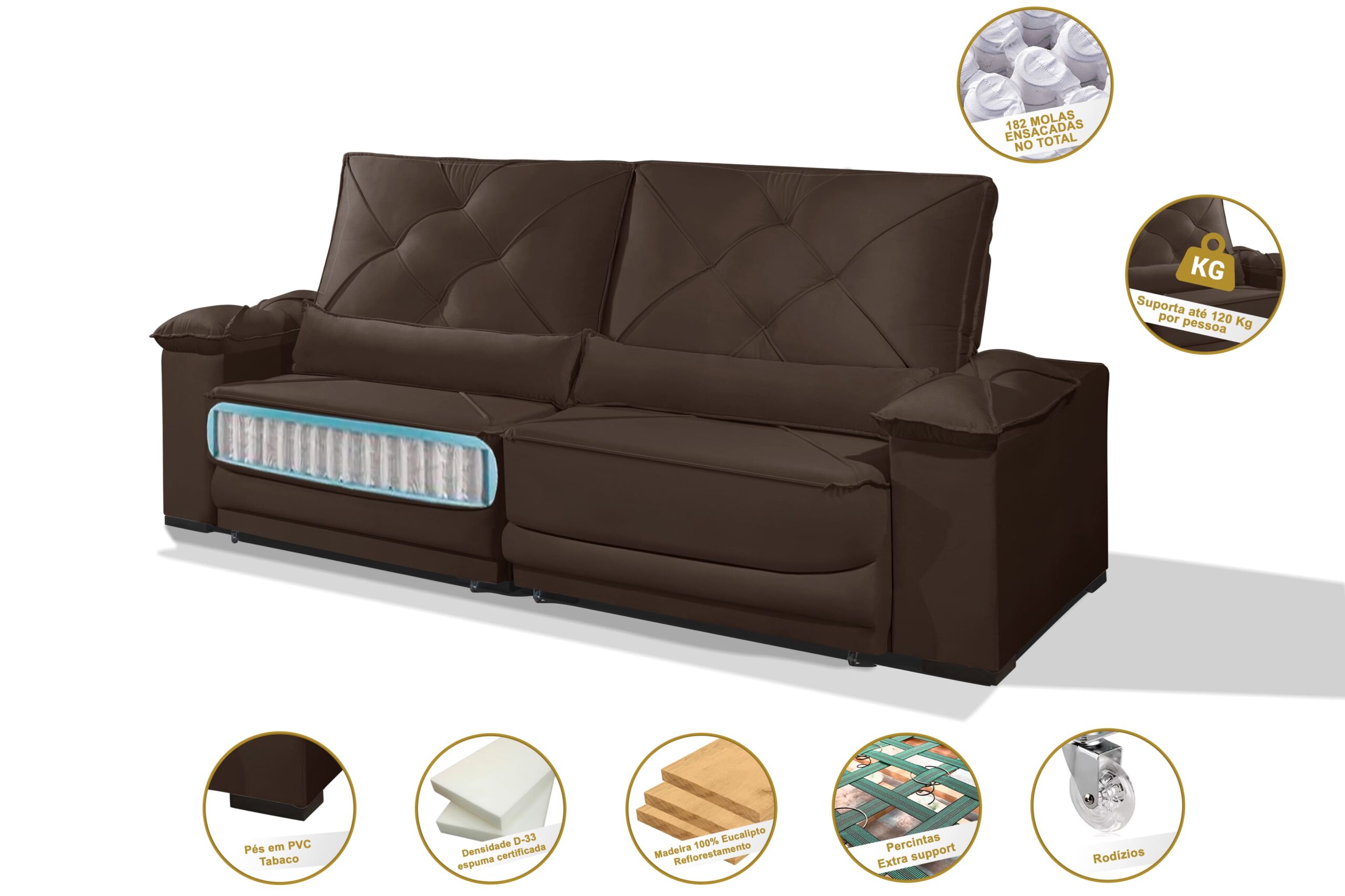 - Assento retrátil em espuma D-33, sustentação com cintas elásticas de alta resistência, molas bonel, corrediças metálicas tubulares com pillow de 20 cm.